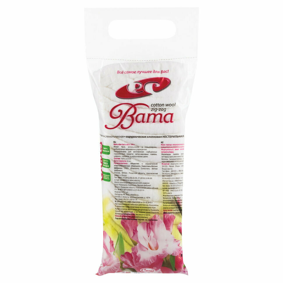 Вата медицинская нестерильная емельянъ савостинъ ЗИГ-ЗАГ, 100 гр., 630581 интересное: