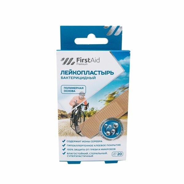 Купить Лейкопластырь бактерицидный с cеребром полимерная основа Premium First Aid/Ферстэйд 20шт