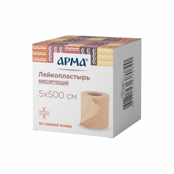 Лейкопластырь фиксирующий тканевый телесный Арма 5х500см интересное: