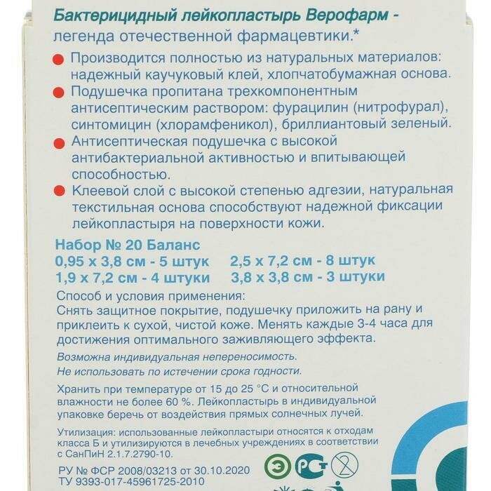 Лейкопластырь бактерицидный Верофарм, белый Эконом, 20 шт. интересное:
