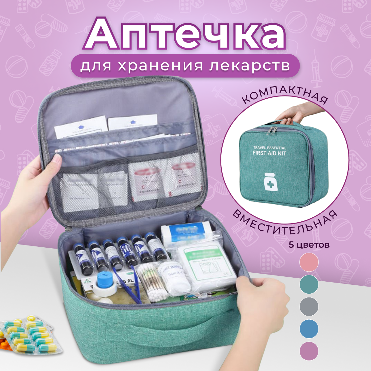 Аптечка - органайзер для хранения и переноски лекарств