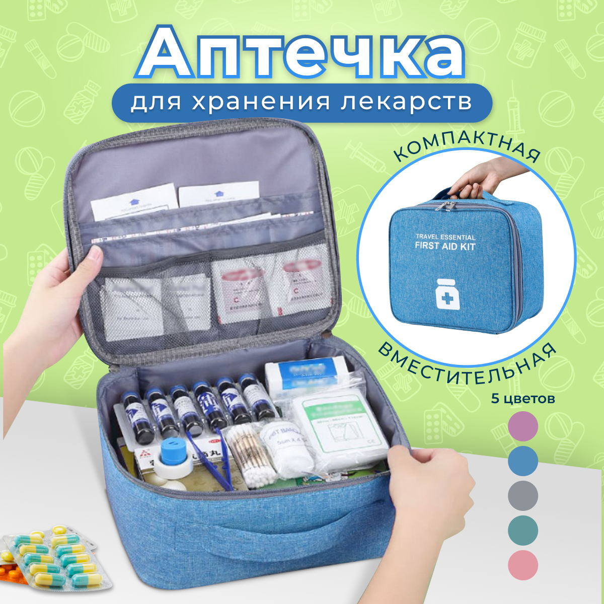 Органайзер контейнер сумка для хранения лекарств, синий интересное: