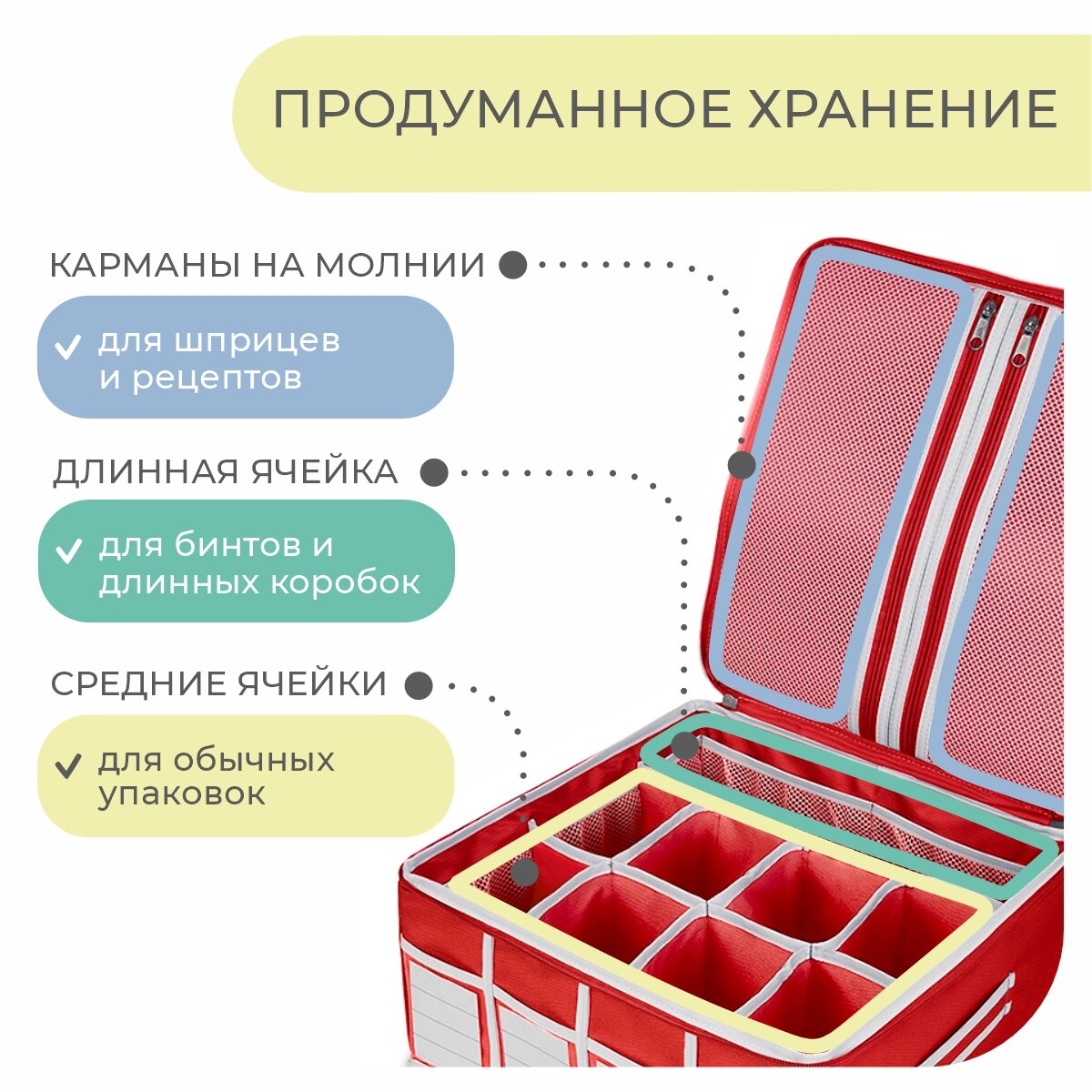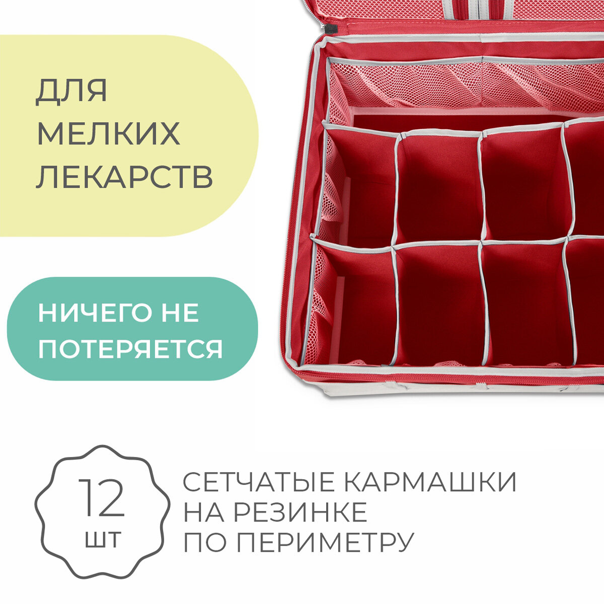 Аптечка домашняя KIDS SAFE красная 34х34х16 см, 21 ячейка интересное: