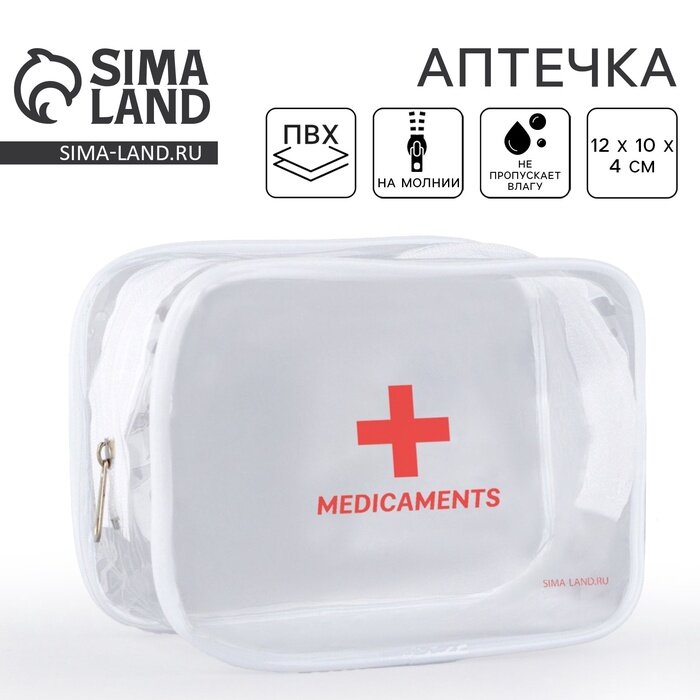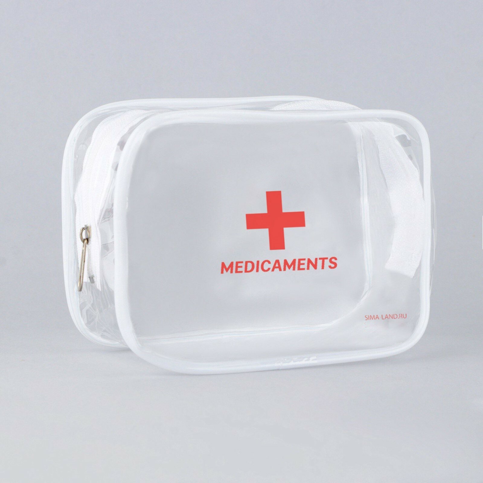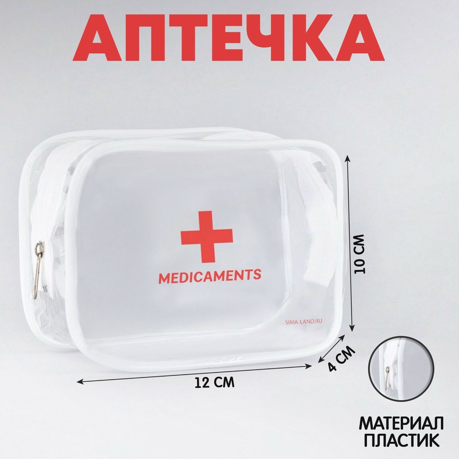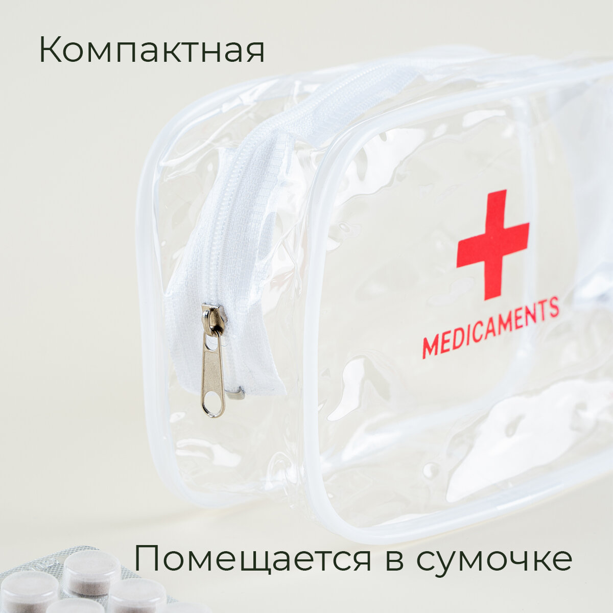 Аптечка дорожная прозрачная "MEDICAMENTS", 12*10 см, интересное: