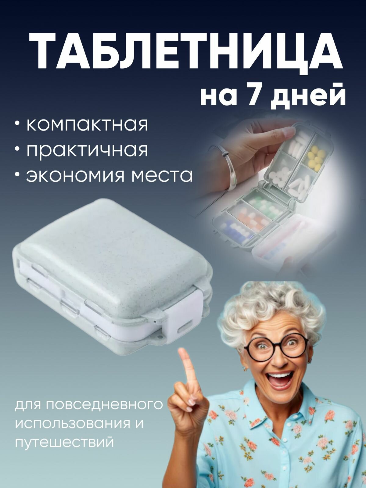 Таблетница карманная Folca утро/день/вечер/ночь серо-голубая интересное: