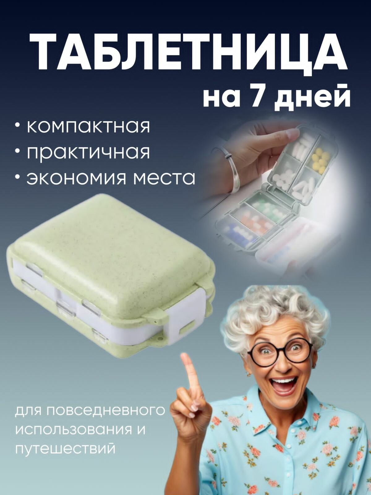 Таблетница карманная Folca утро/день/вечер/ночь салатовая интересное: