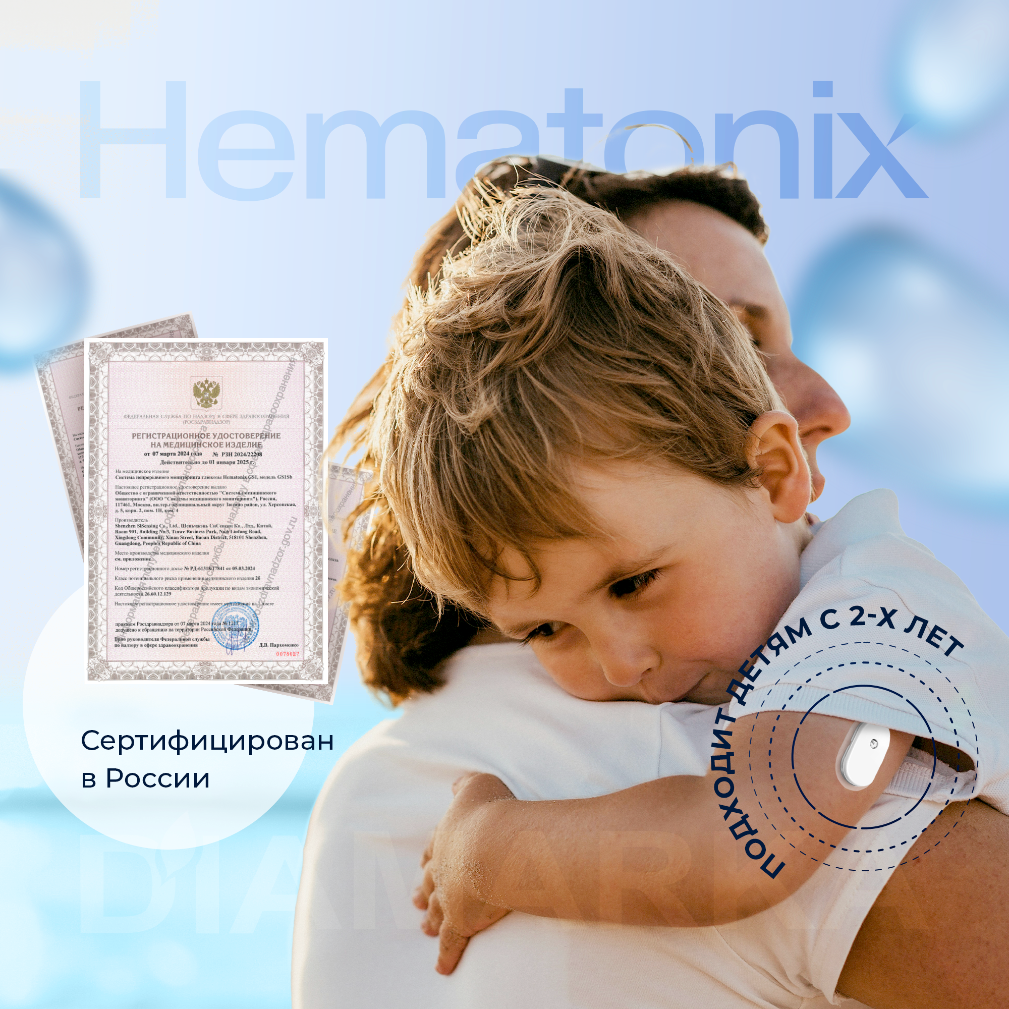 | Дополнительная информация | Высокая точность измерений (MARD) системы Hematonix GS1 составляет 8.83%, что обеспечивается за счет применения биосенсорных и микроэлектронных технологий. Диапазон измерений устройства находится в пределах 2.2 - 25 мМоль/л |