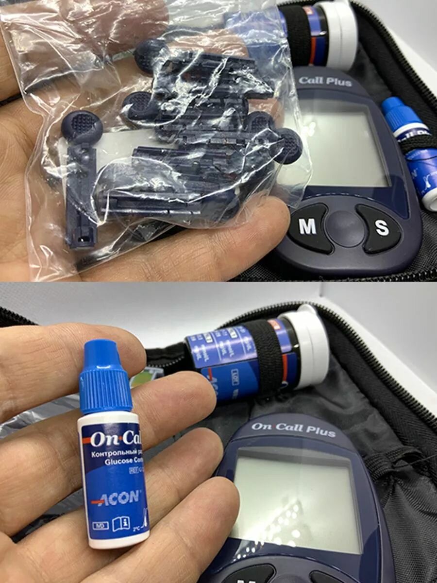 Глюкометр On Call Plus (Он Колл Плюс) + 10 тест-полосок + 10 ланцетов + прокалыватель в наборе, измеритель сахара в крови, мониторинг глюкозы при сахарном диабете