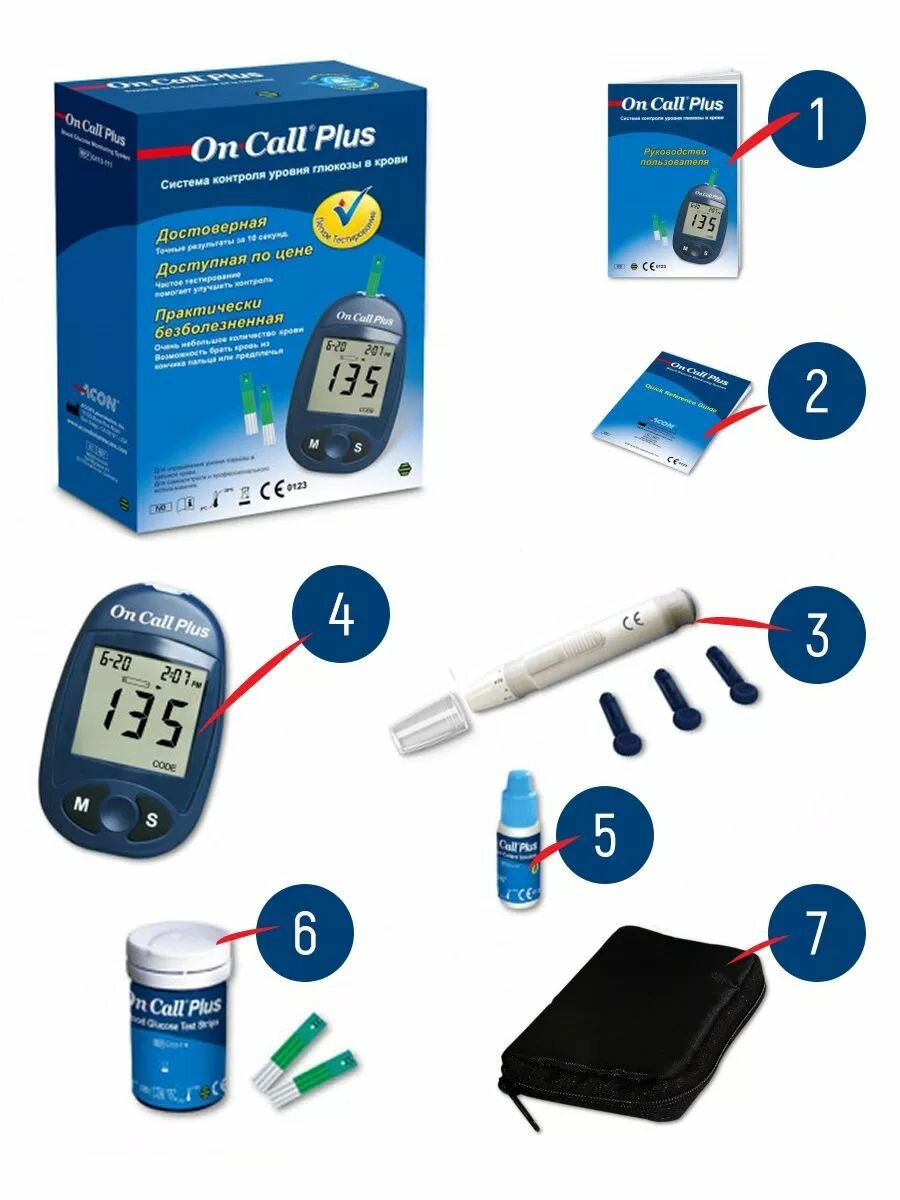 Глюкометр On Call Plus (Он Колл Плюс) + 60 тест-полосок + прокалыватель + 10 ланцетов, набор, система для определения уровня глюкозы