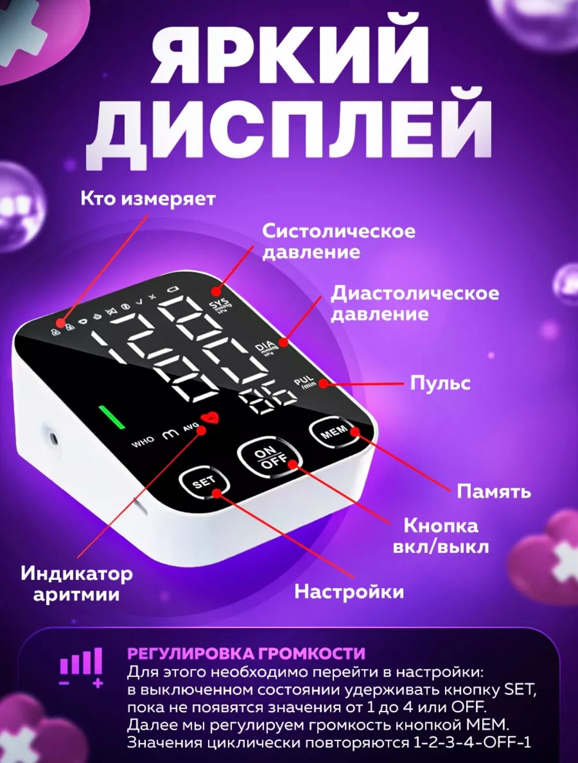 Автоматический медицинский тонометр с индикатор аритмии на плечо с голосовым сопровождением интересное: