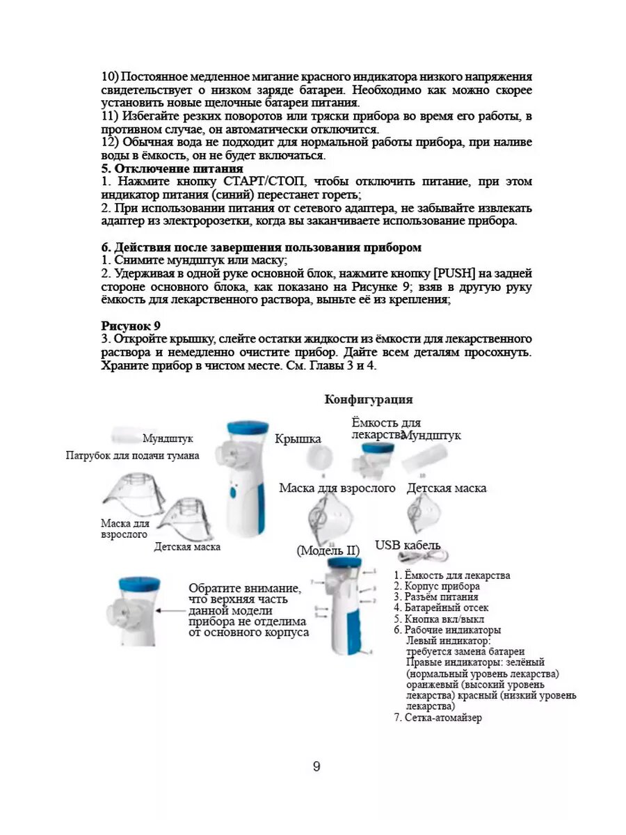 | Насадки в комплекте | маска взрослая / маска детская / мундштук |