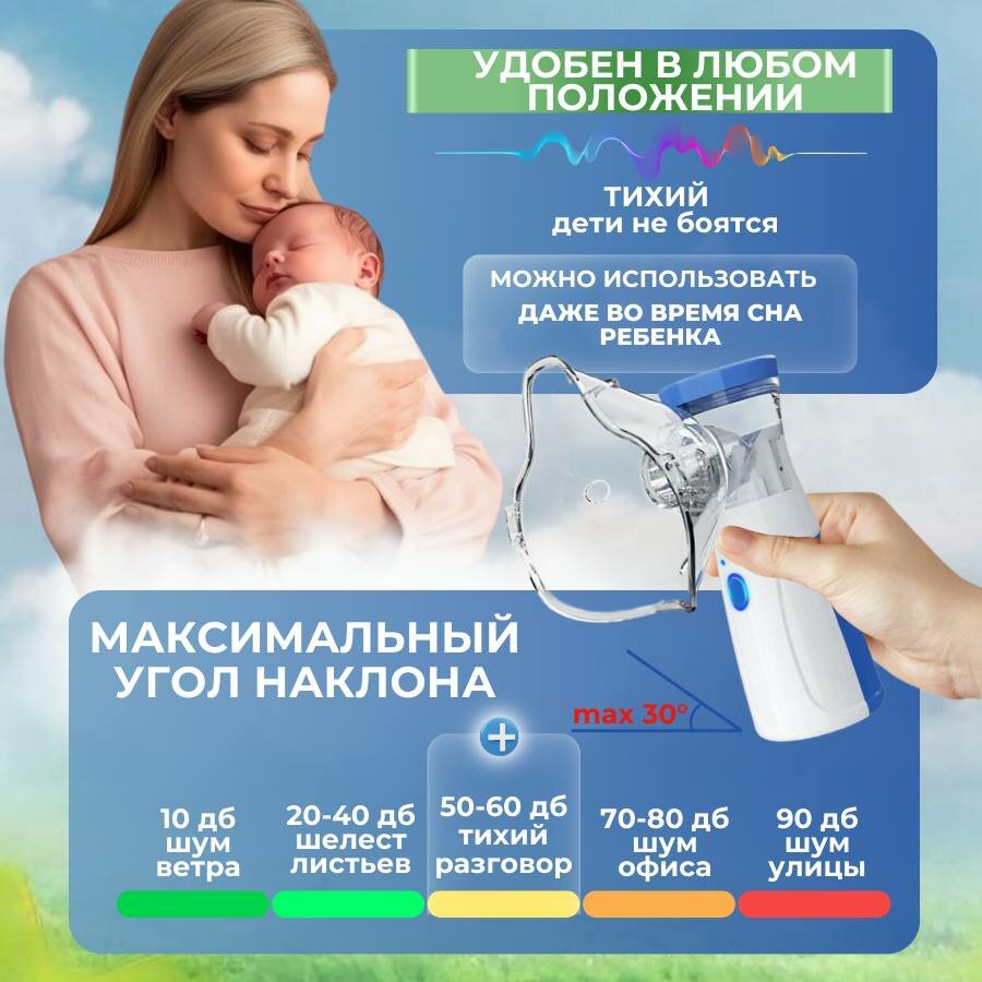 ингалятор небулайзер портативный аккумуляторный для всей семьи, с 3 насадками интересное: