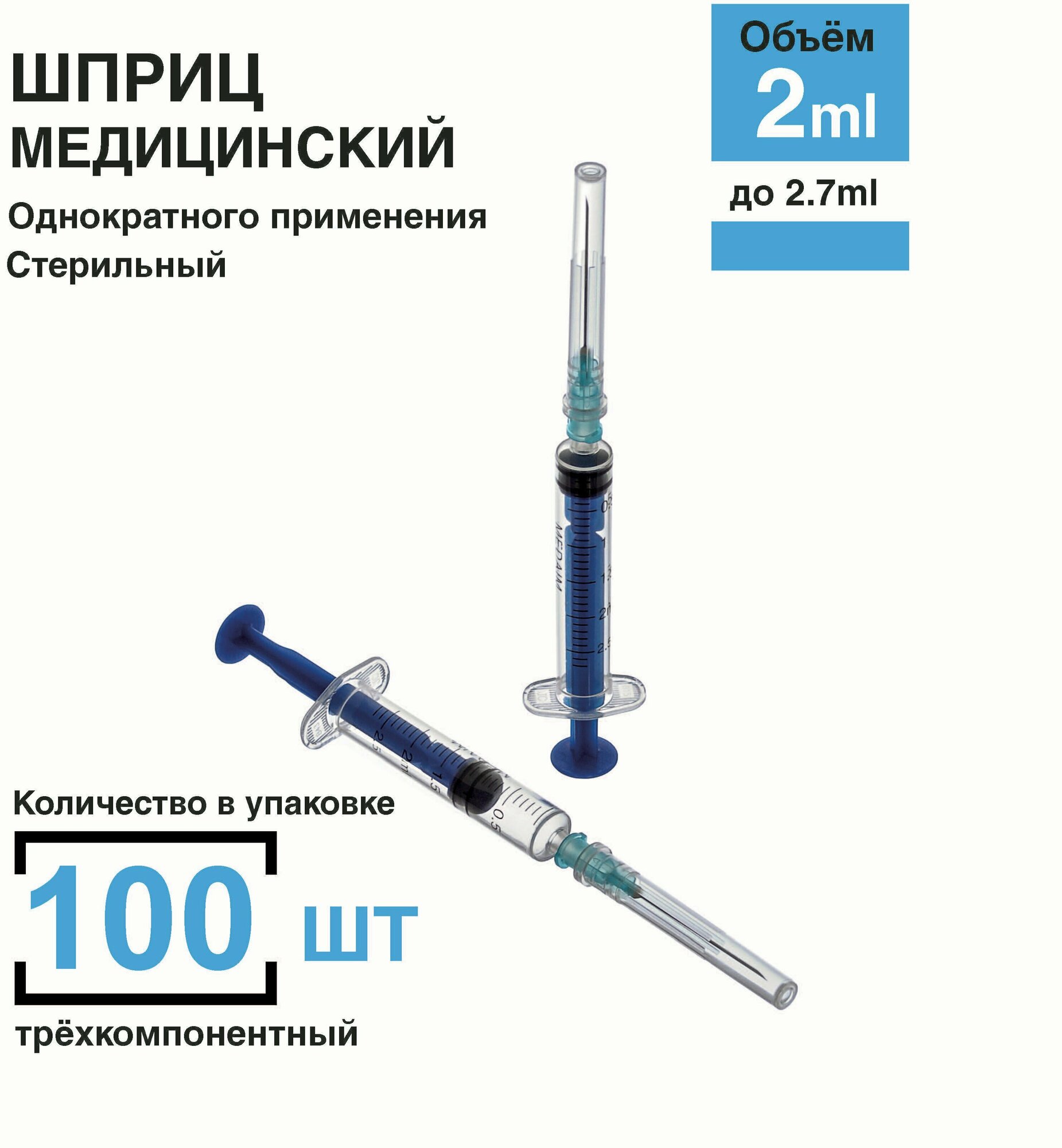 СохранитьШприц 2 мл. 100 шт/уп. (игла 0,63 х 32 мм) крепление луер-слип (luer-slip) интересное:
