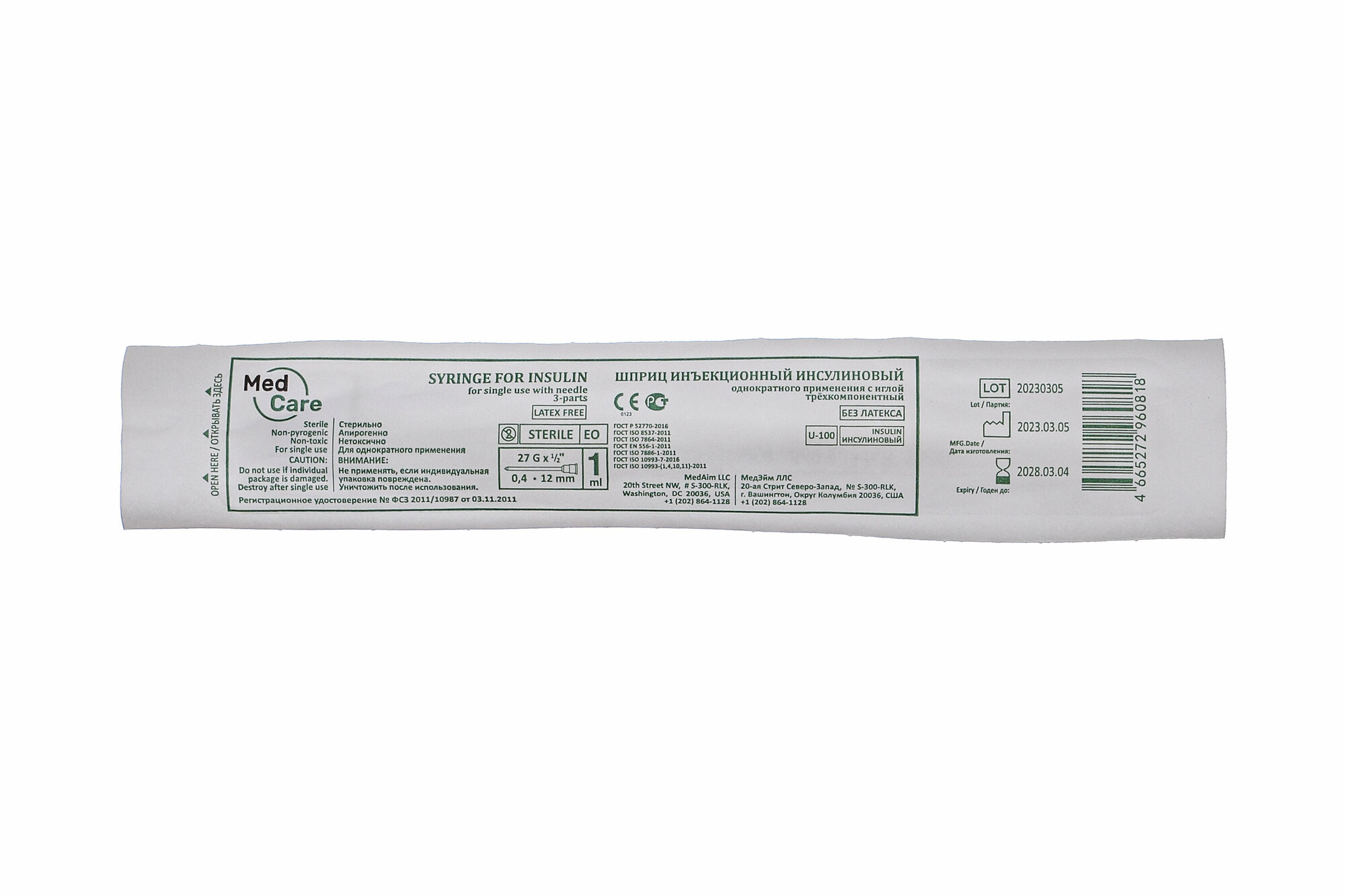 Шприц инсулиновый 1 мл 100 шт/уп. U-100 размер 27G (игла 0,4 х 12 мм) интересное: