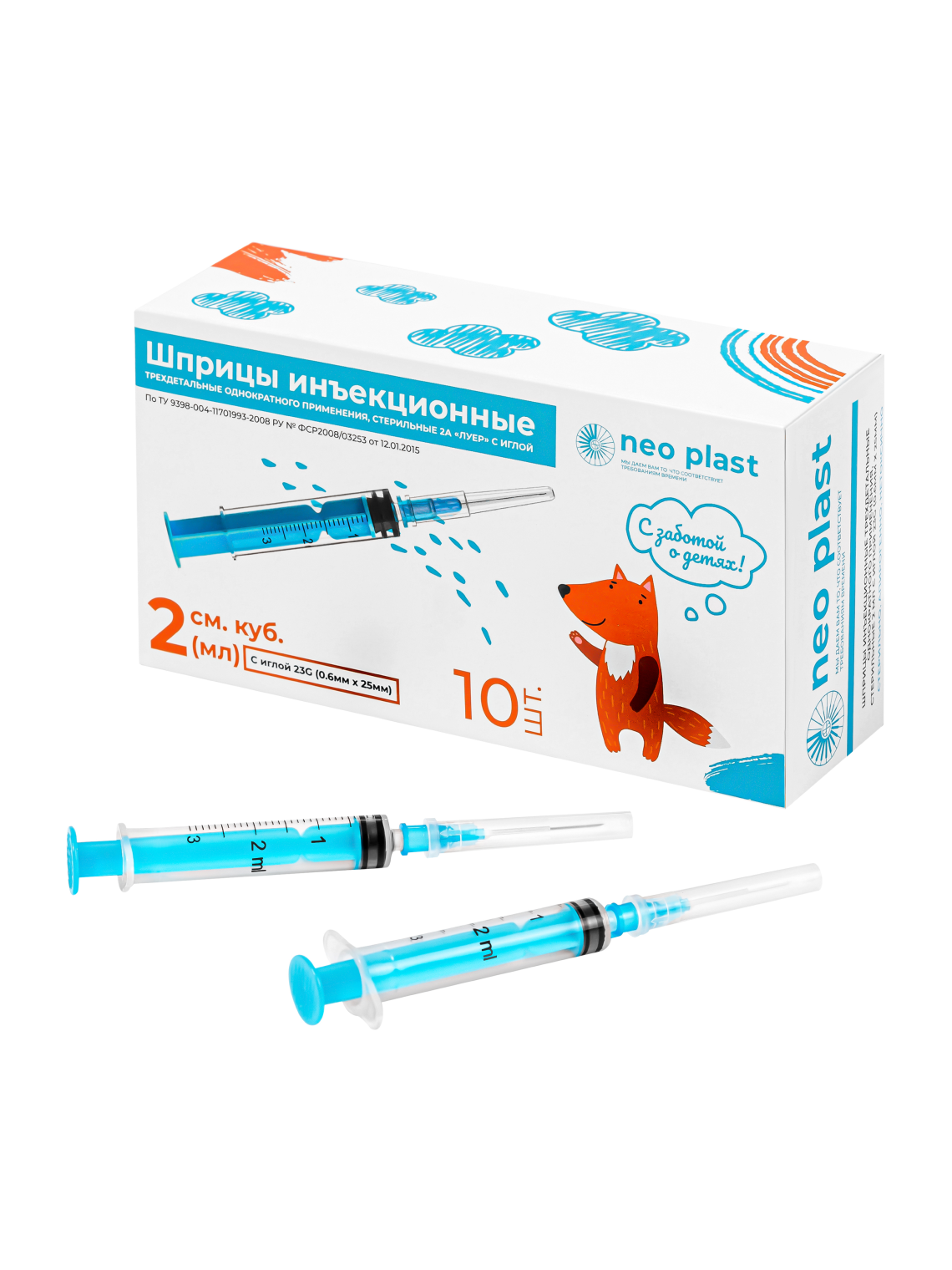 Шприц 2 мл. с иглой (0.6х25 мм) одноразовый, стерильный - 10 шт. в упаковке интересное:
