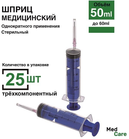 Шприц 50мл. 25 шт/уп. (игла 1,2 х 40 мм) крепление луер-слип (luer-slip) медицинский/для масла/для промывания/для смазки/кулинарный/большой/для авто/ интересное: