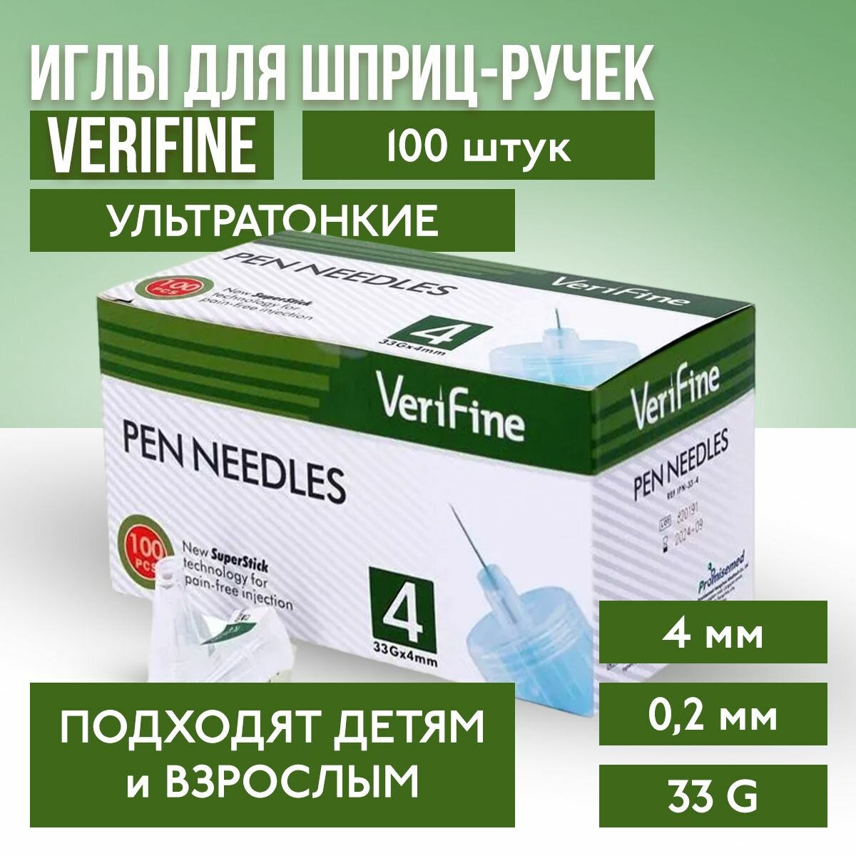 Иглы для инсулиновых шприц-ручек Verifine (Верифайн), 4 мм, 33G , 100 штук интересное: