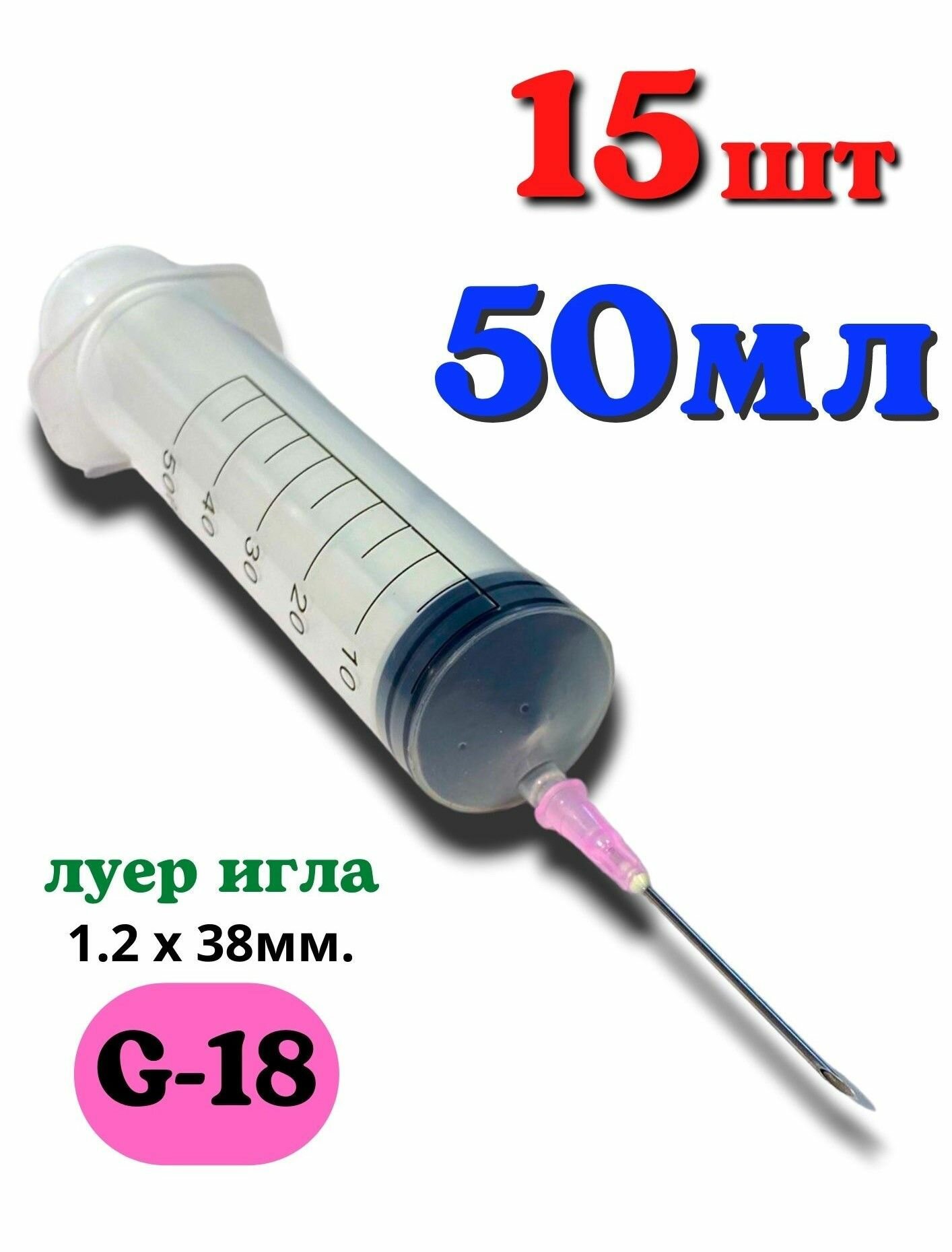 Шприц 50 мл. медицинский со съемной луер иглой g18 - 15 шт интересное: