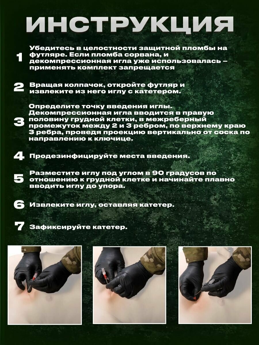 Тактическая игла декомпрессионная (от пневмоторакса) - 10 шт пегас Р