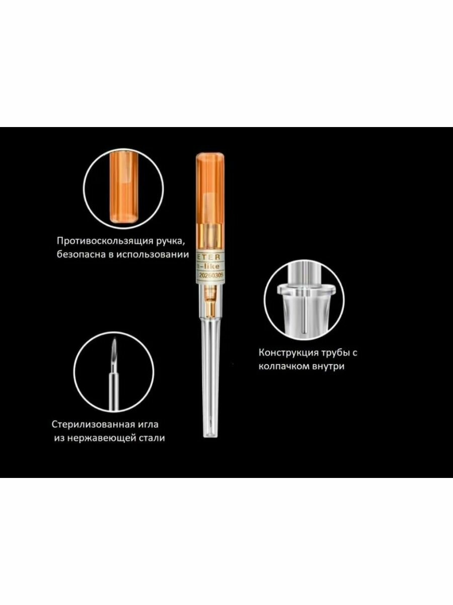Тактическая инъекционная игла декомпрессионная синяя 24G 0.5 мм. (от пневмоторакса), катетеры модели бабочка - 10 шт пегас Р