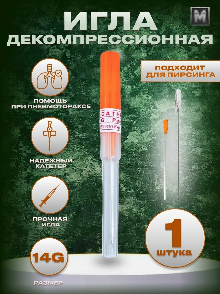 СохранитьИгла декомпрессионная оранжевая тактическая (от пневмоторакса) - 1 шт пегас Р интересное: