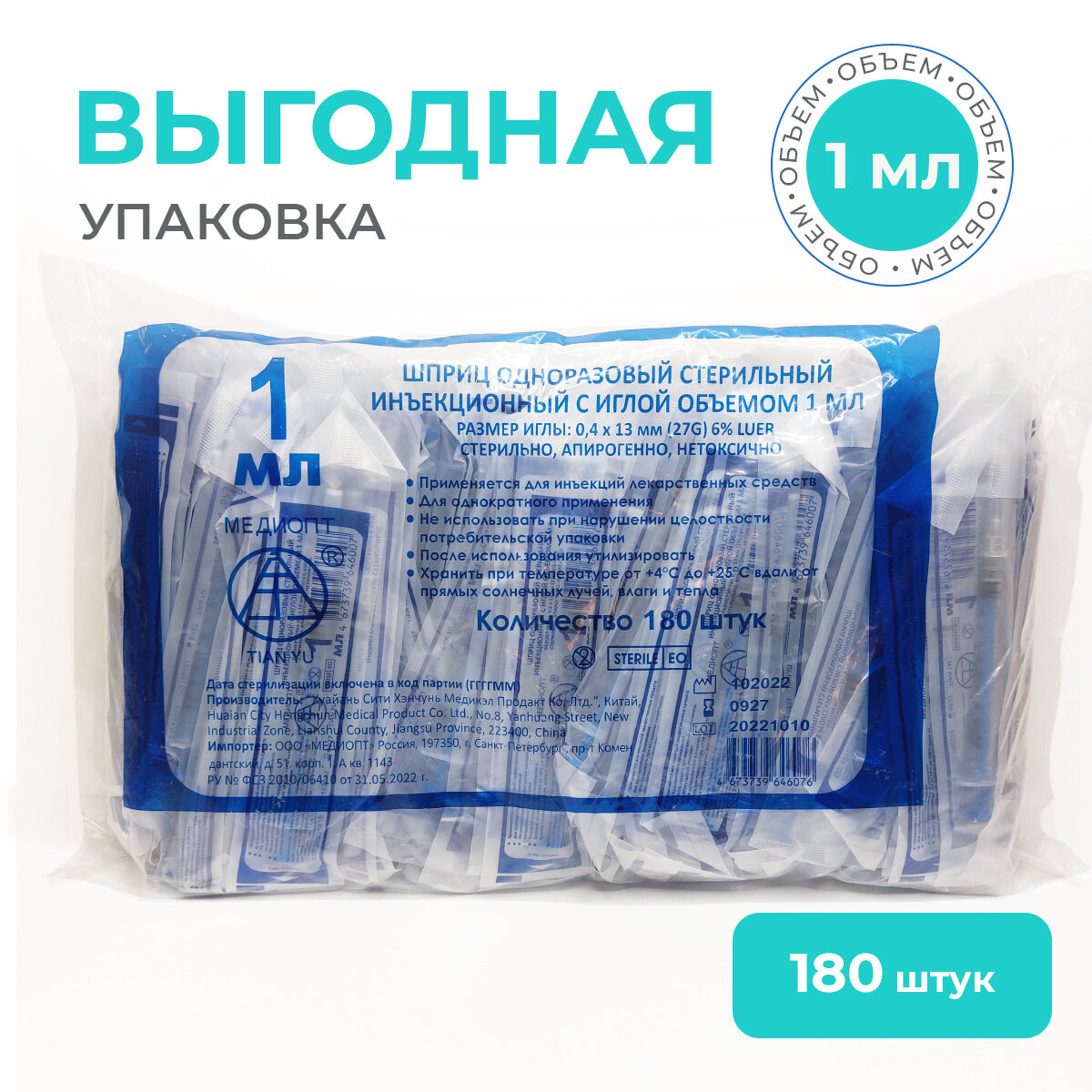 Шприц 1 мл трехкомпонентный с иглой 27G Luer Slip, 180 шт. интересное:
