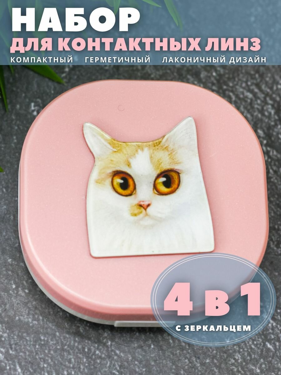 Контейнер для линз контактных, дорожный набор Purebred Cat pink-ginger интересное: