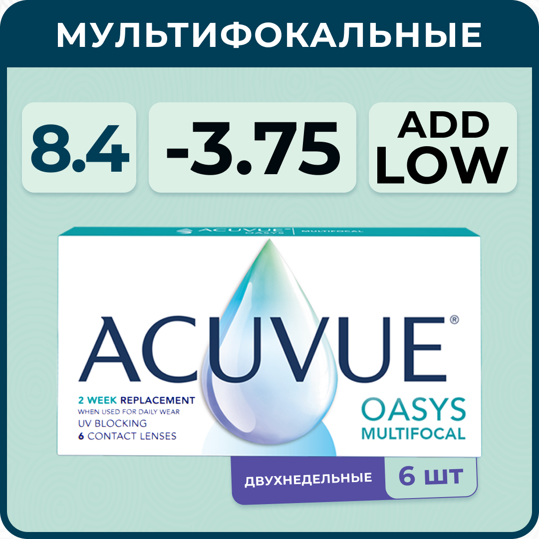 Купить Мультифокальные линзы ACUVUE Oasys Multifocal 6 линз R 8.4 SPH -3.75 Аддидация LOW (от +0,75 D до +1,25 D), двухнедельные