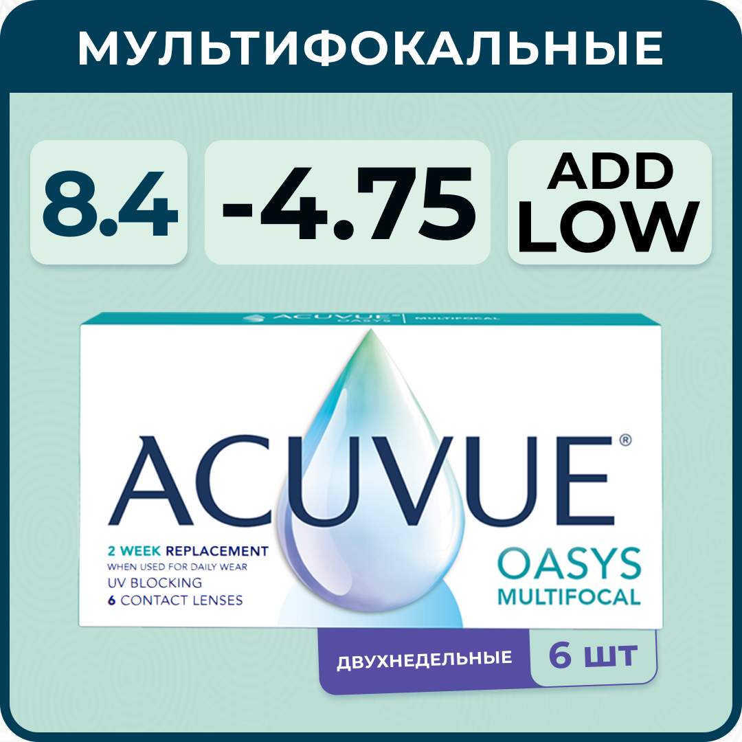 Купить Мультифокальные линзы ACUVUE Oasys Multifocal 6 линз R 8.4 SPH -4.75 Аддидация LOW (от +0,75 D до +1,25 D), двухнедельные