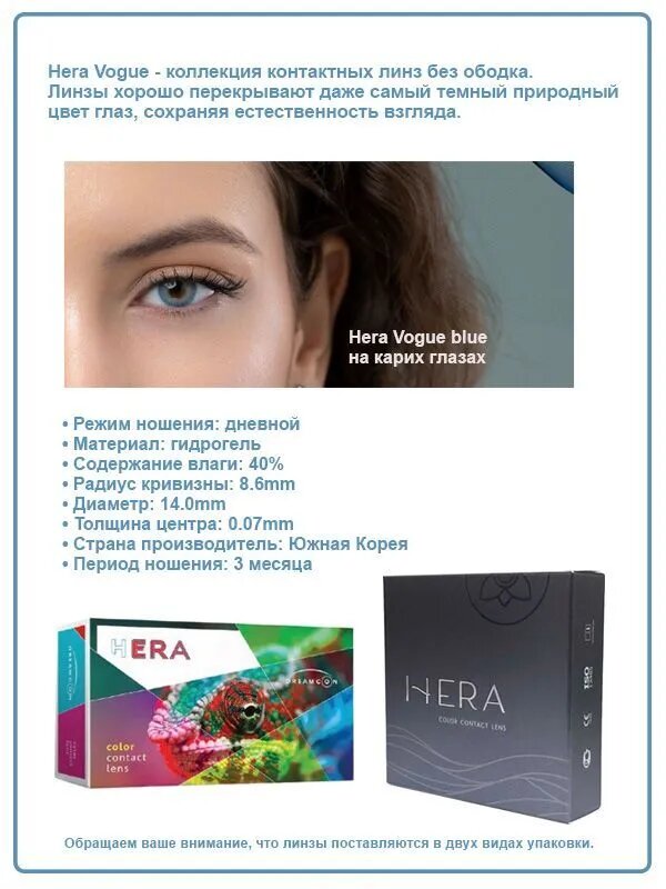 СохранитьЦветные контактные линзы Hera Vogue blue -1.0 / 2 линзы интересное: