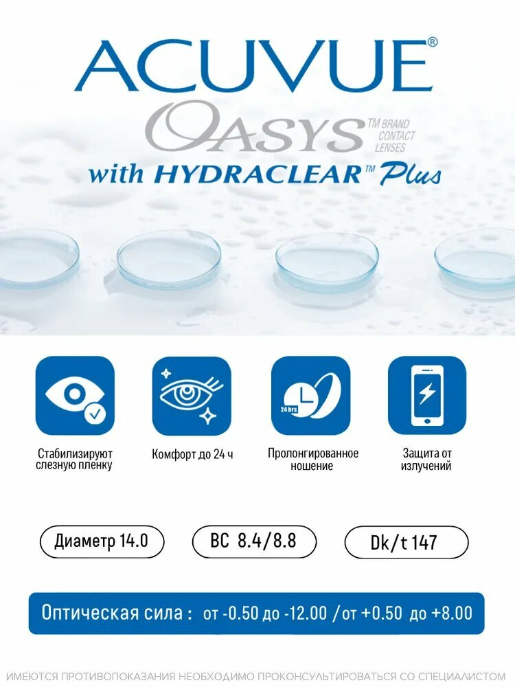 Ниже Вы можете прочитать отзывы на ACUVUE OASYS with Hydraclear Plus (2 упаковки по 6 линз) +8.00 R 8.8, ознакомится с подробными характеристиками, посмотреть интересные обзоры и фотографии на ACUVUE OASYS with Hydraclear Plus (2 упаковки по 6 линз) +8.00 R 8.8.