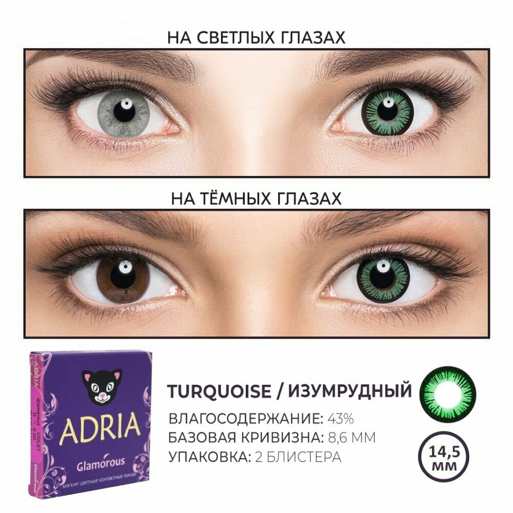 Набор цветные контактные линзы Adria Glamorous color COLOR BOX №3, TURQUOISE, квартальные, -8,50 / 14,5 / 8,6 / 2 шт.