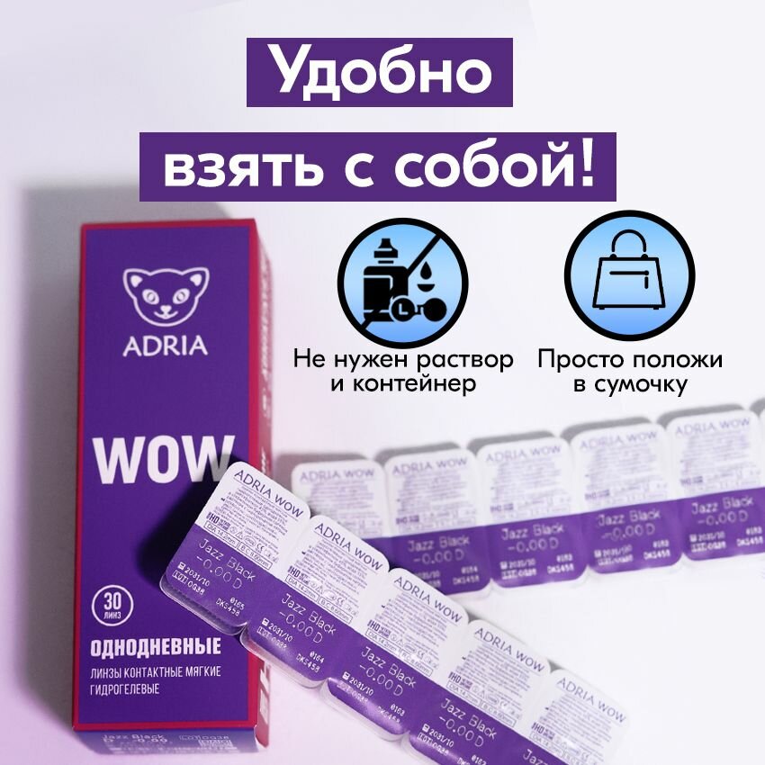 Цветные линзы ADRIA WOW, Jazz Black, однодневные, -0.00, 30 шт.