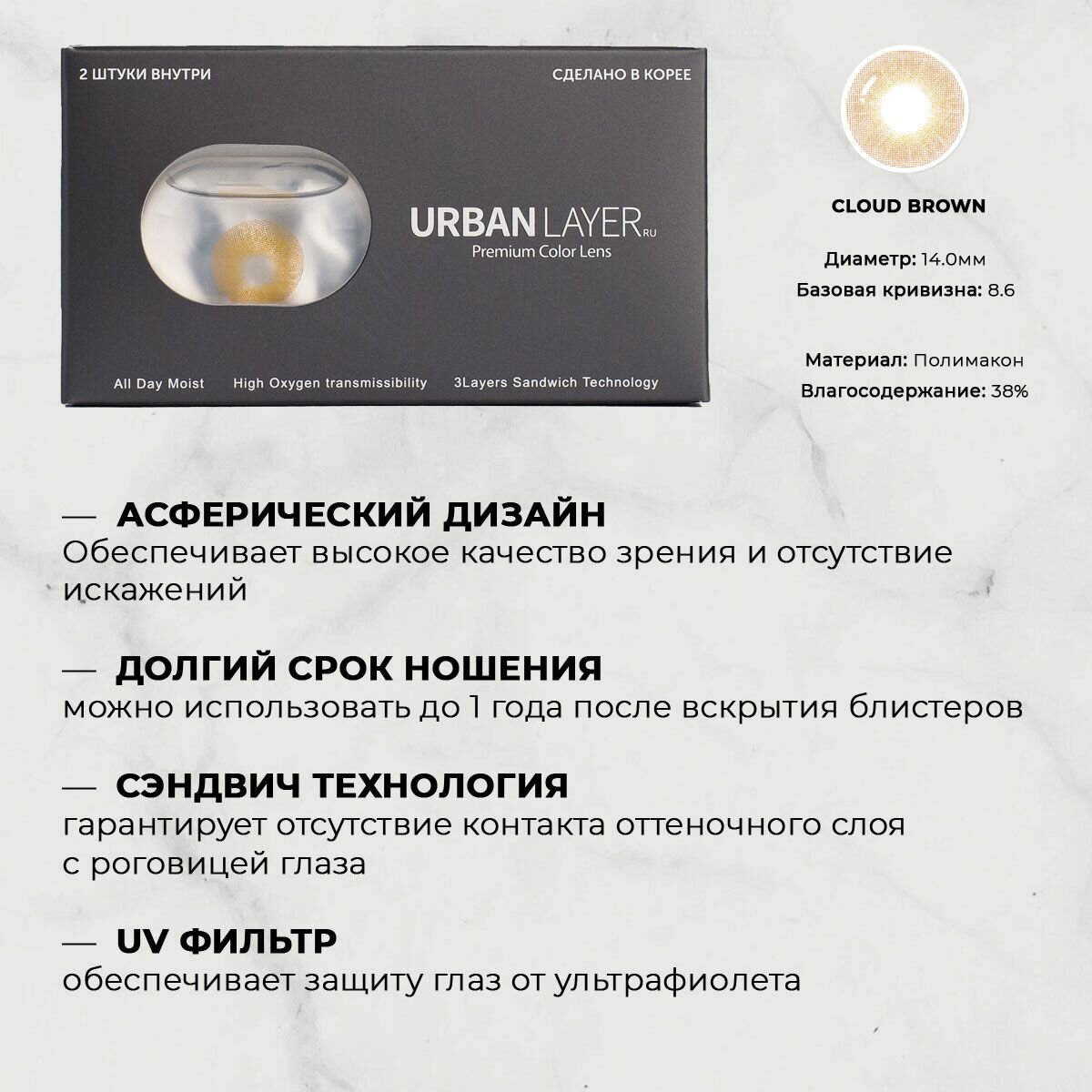 Цветные контактные линзы URBAN LAYER ru Cloud Brown -4.50 / 14.0 / 8.6, 2 шт.