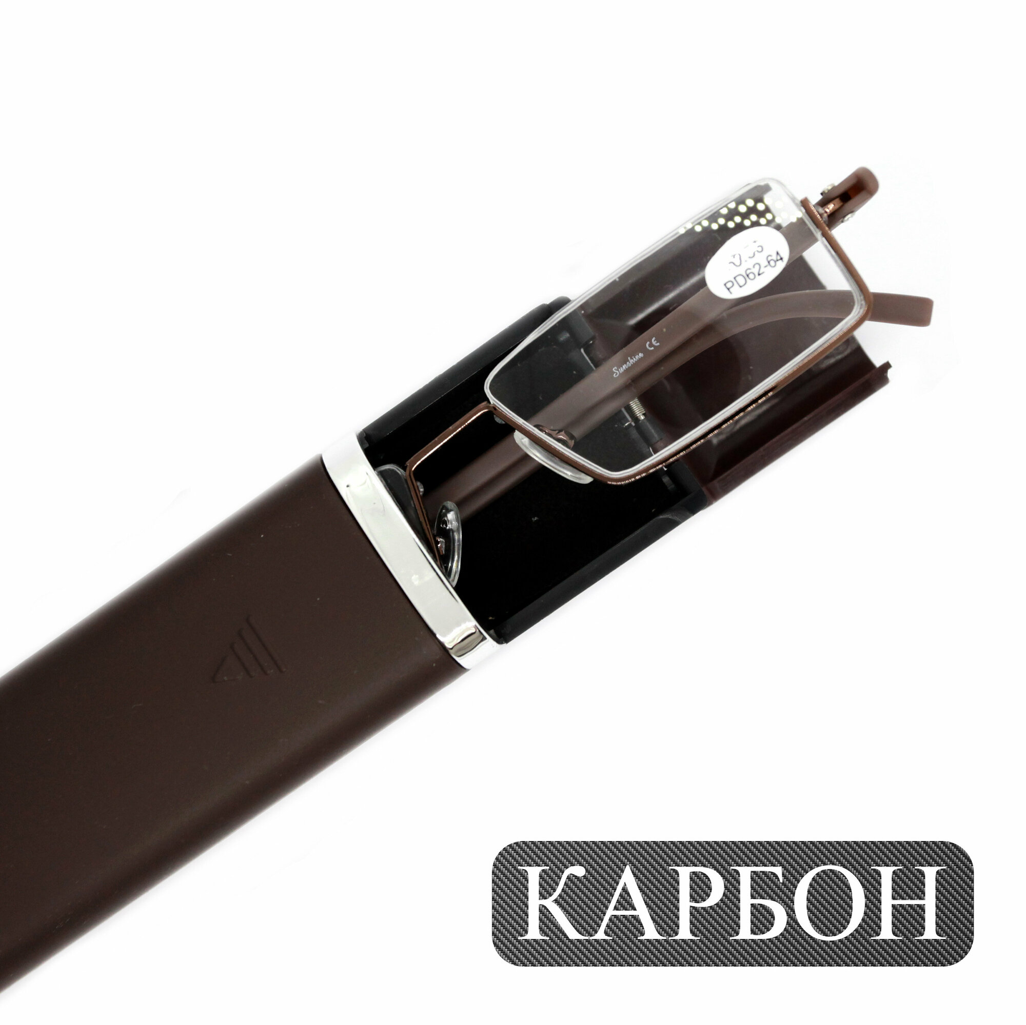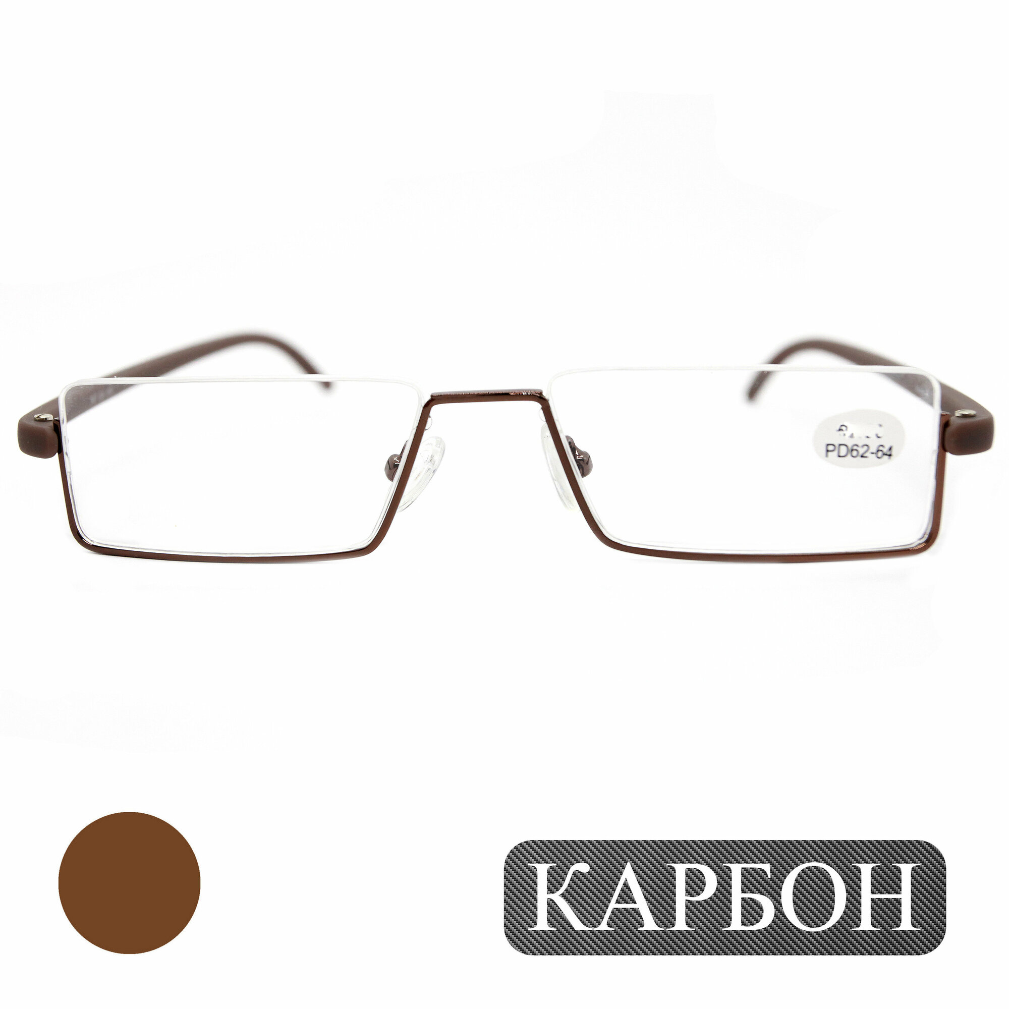 Полуободковые очки лекторы карбоновые (+3.25) противоударные с футляром, TR747 C4, леска сверху, линза пластик, цвет коричневый, pd 62-64