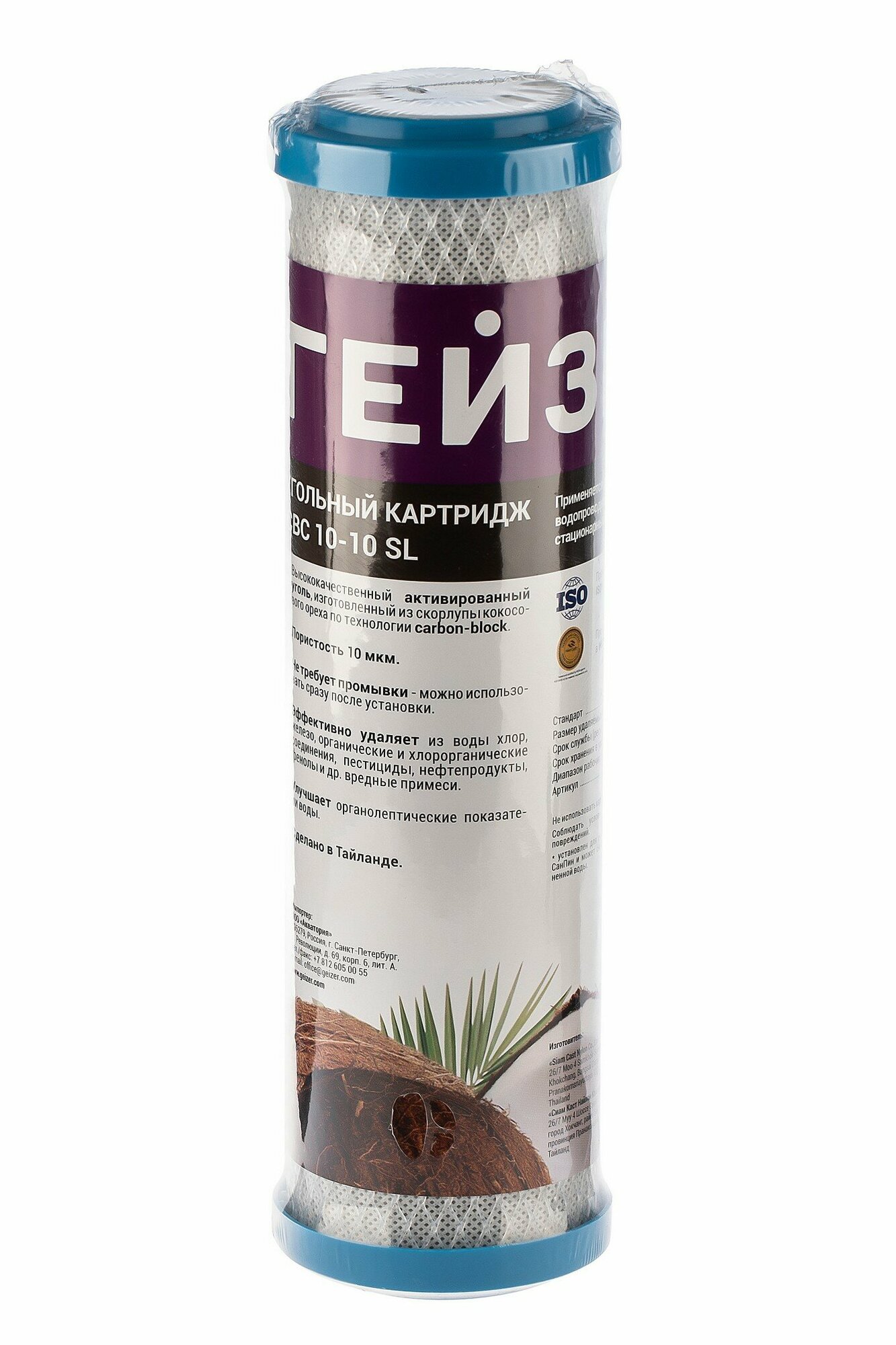 Угольный картридж для очистки воды Гейзер CBC 10 Китай - 10SL Карбон Блок, Slim Line 10"