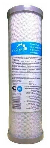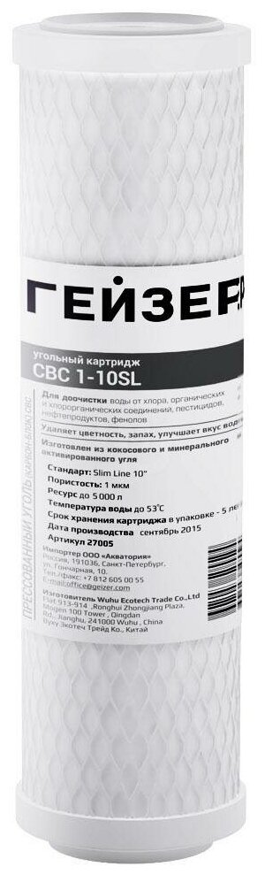 Угольный картридж Гейзер CBC 10 - 10 SL, для кондиционирования воды и удаления мелких нерастворимых примесей, 27071