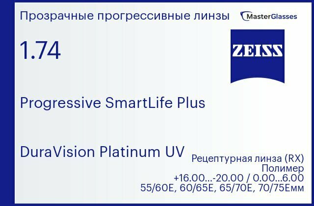 Линза ZEISS Progressive SmartLife Plus 1.74 DV Platinum UV интересное: