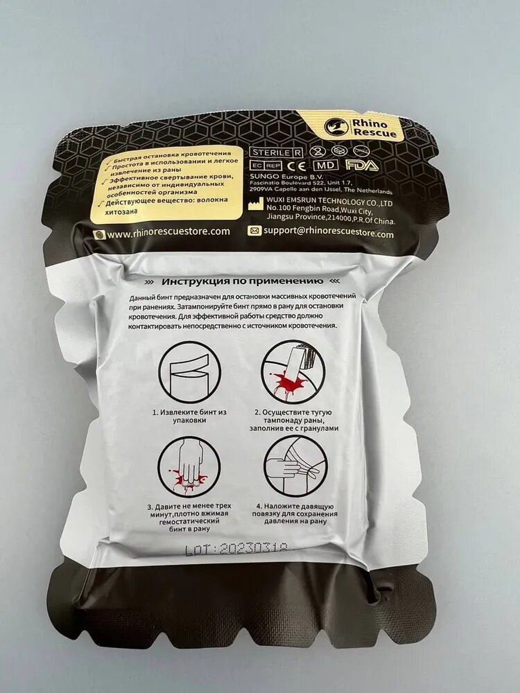 СохранитьКомплект 6шт Rhino Rescue Гемостатический бинт хитозановый 7,5х150см Z-укладки тактический медицинский кровоостанавливающий/перевязочный пакет sos интересное: