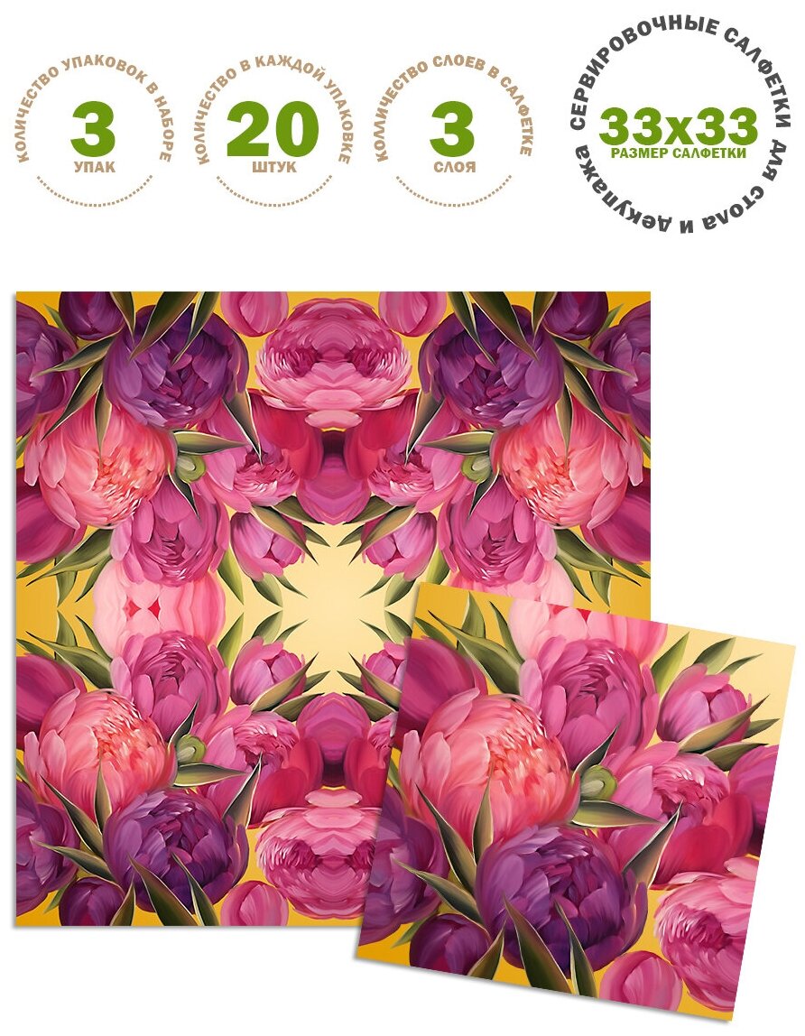 Набор салфеток "Полянка" для стола и декупажа, 33*33 см, 3 слоя, 20 шт/3 уп интересное:
