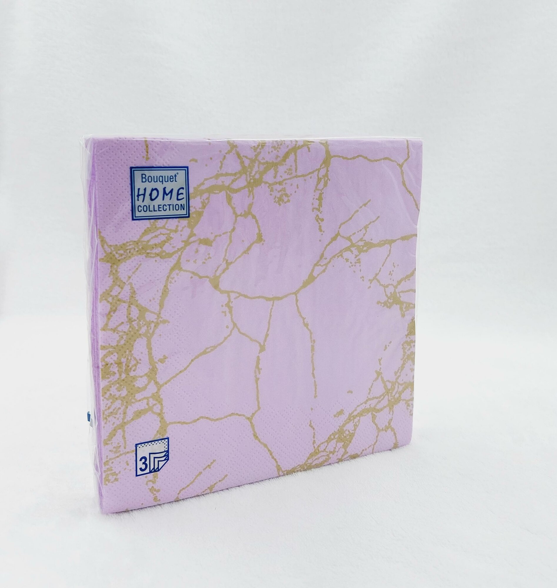 Купить Бумажные салфетки Bouquet "Золотой мрамор на лиловом" 3-х слойные, 33х33 см, 20 штук