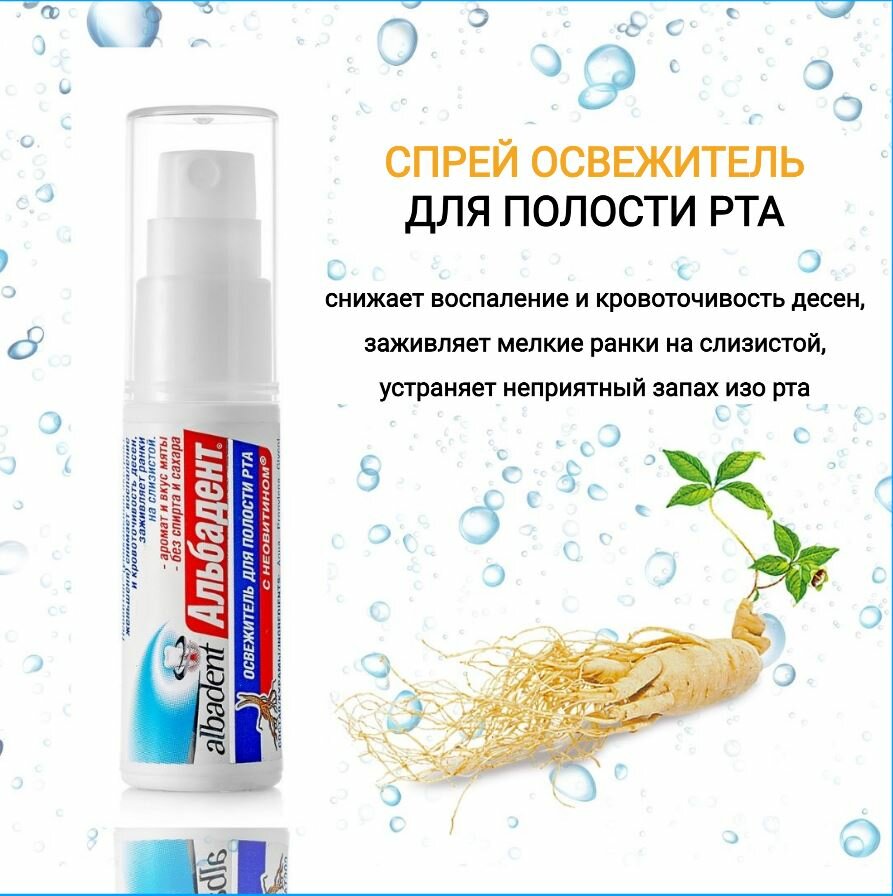Альбадент Освежитель для полости рта "с Неовитином", спрей, 10 мл интересное: