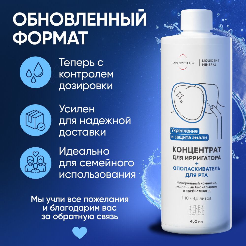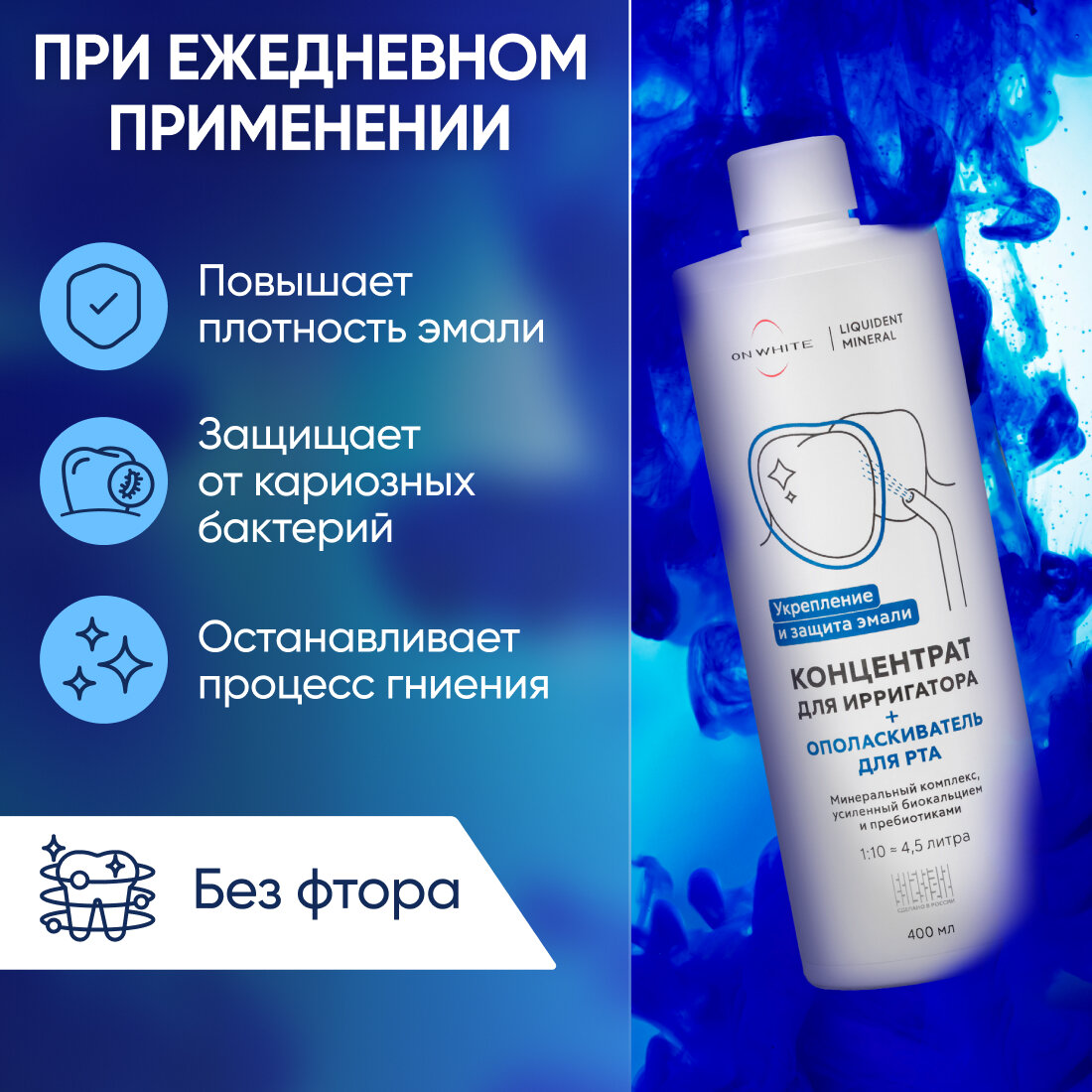 Ополаскиватель для полости рта и жидкость для ирригатора концентрат Минеральный комплекс с биокальцием и пребиотиками ON WHITE, 400 мл. интересное: