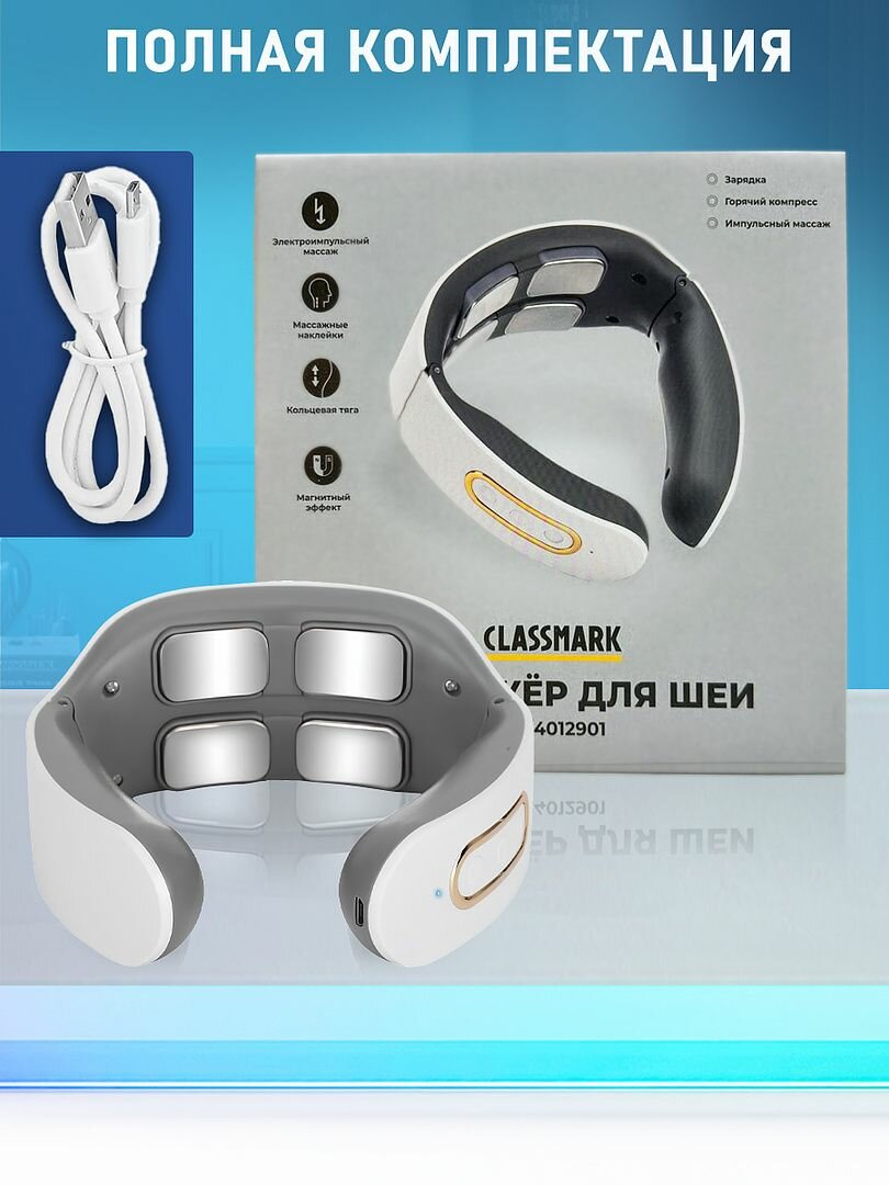 Массажер для шеи Classmark KA24012901 электрический, электроимпульсный, беспроводной, 6 режимов, расслабление и восстановление интересное: