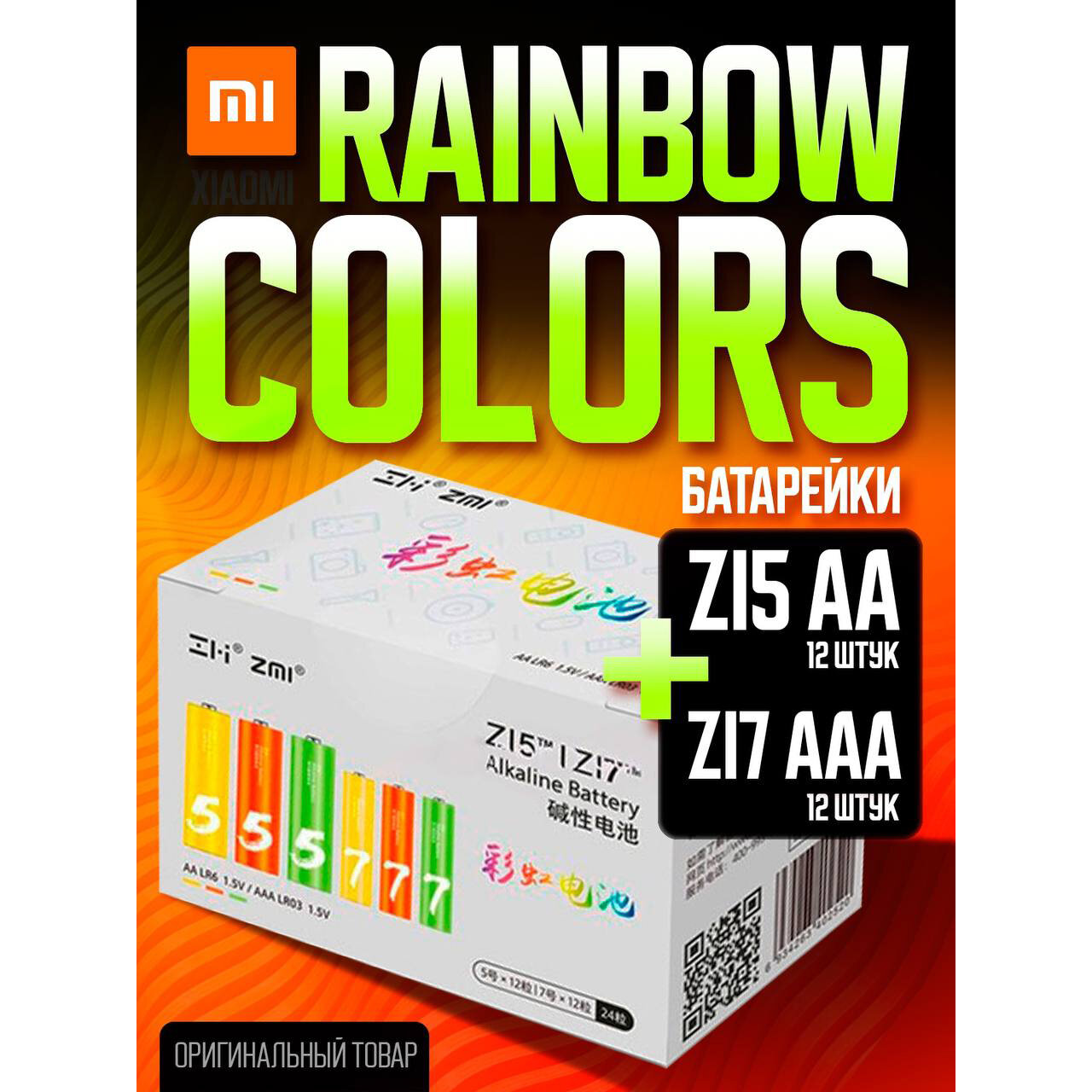 Купить Батарейки алкалиновые ZMI Rainbow Z15AA/Z17AAA (12+12 шт.) (LR24), цветные