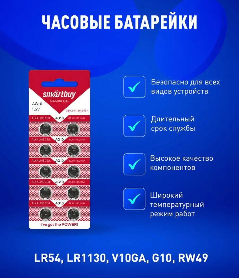 Батарейка алкалиновая AG10/LR54/LR1130/389. 1,5V, упаковка 10 штук интересное:
