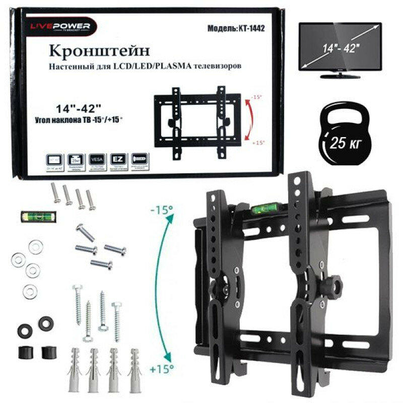 Кронштейн для телевизора 14-42" Live-Power XT-1442 для LCD/LED телевизоров/мониторов на стену до 25кг наклонный черный