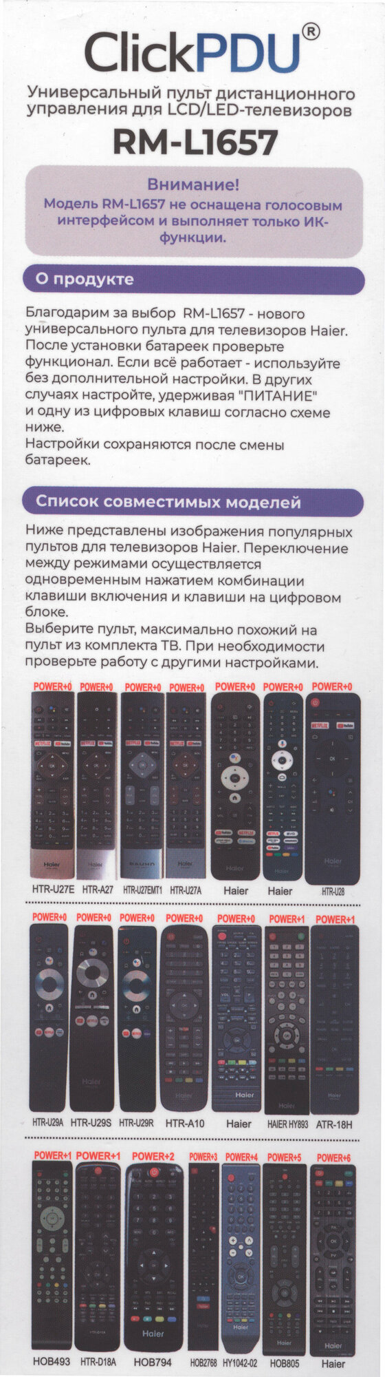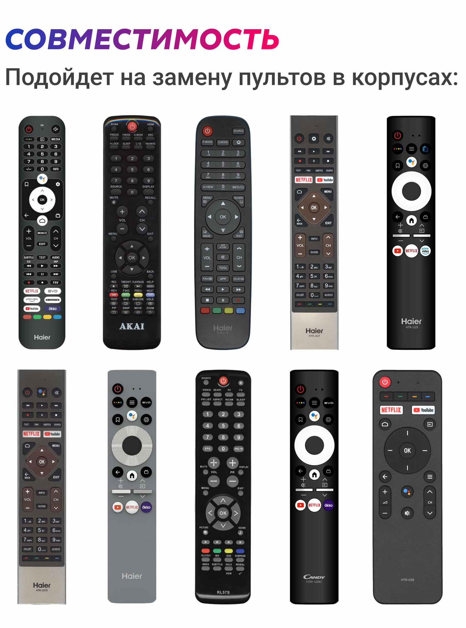 | Производитель совместимых устройств | Haier / TCL / универсальный |