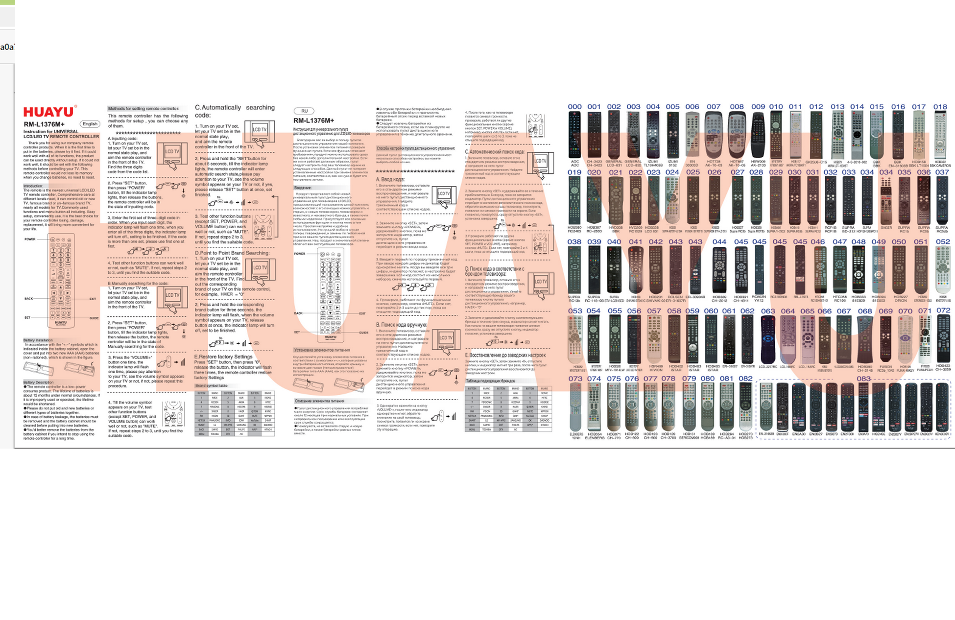 | Настройка пульта ДУ | автоподбор кода / ввод кода |