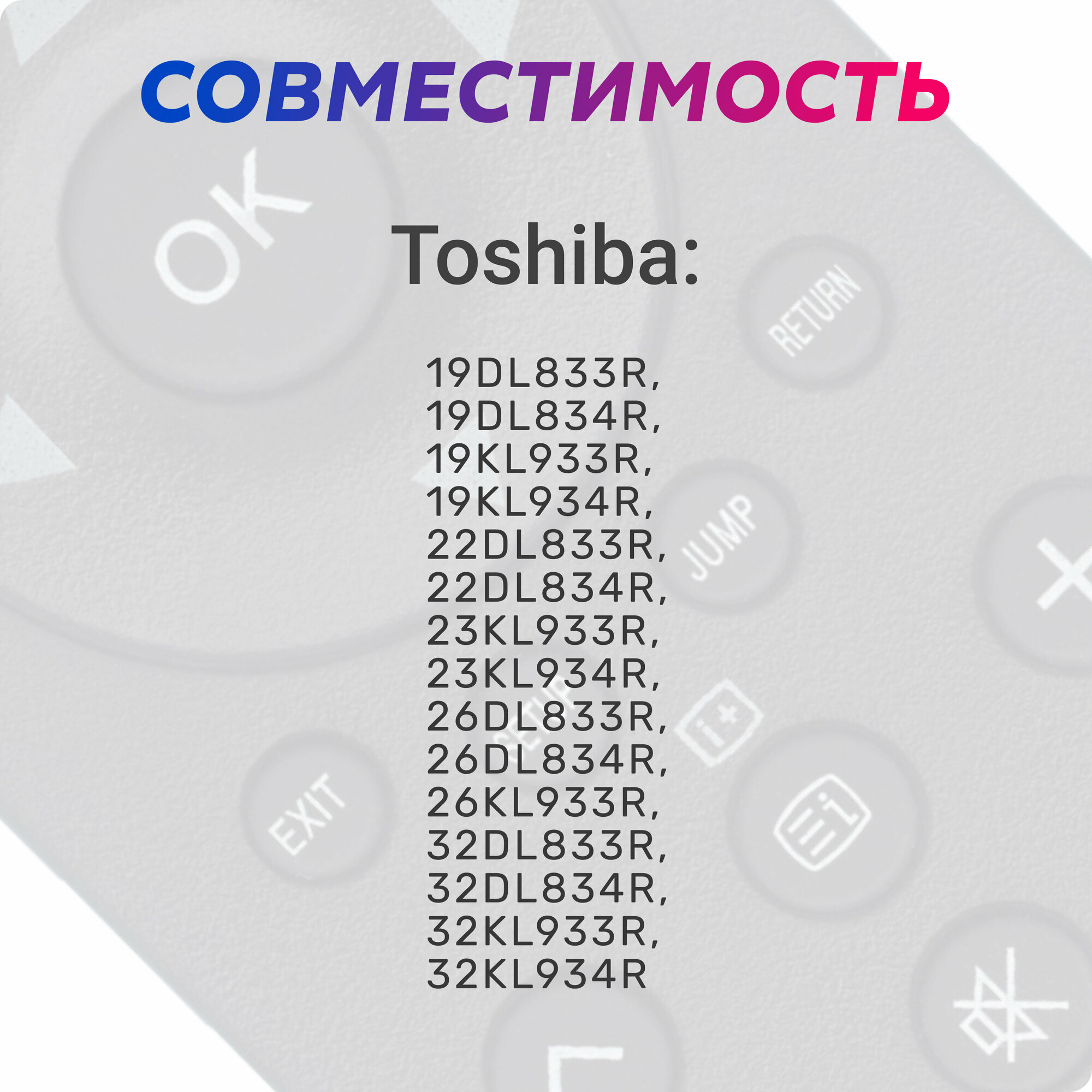 | Назначение | Дистанционное управление телевизорами марки Toshiba |